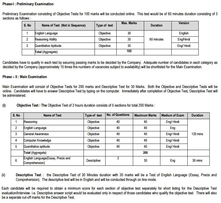 Final Selection : The combined final score of candidates shall be arrived at on the basis of scores obtained by the candidates in the online main examination(Objective and Descriptive Section) and interview. The weightage (ratio) of online Main Examination and Interview will be 80:20 respectively