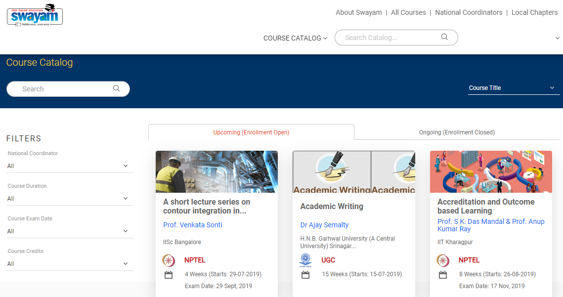 Swayam Portal Courses 2020: